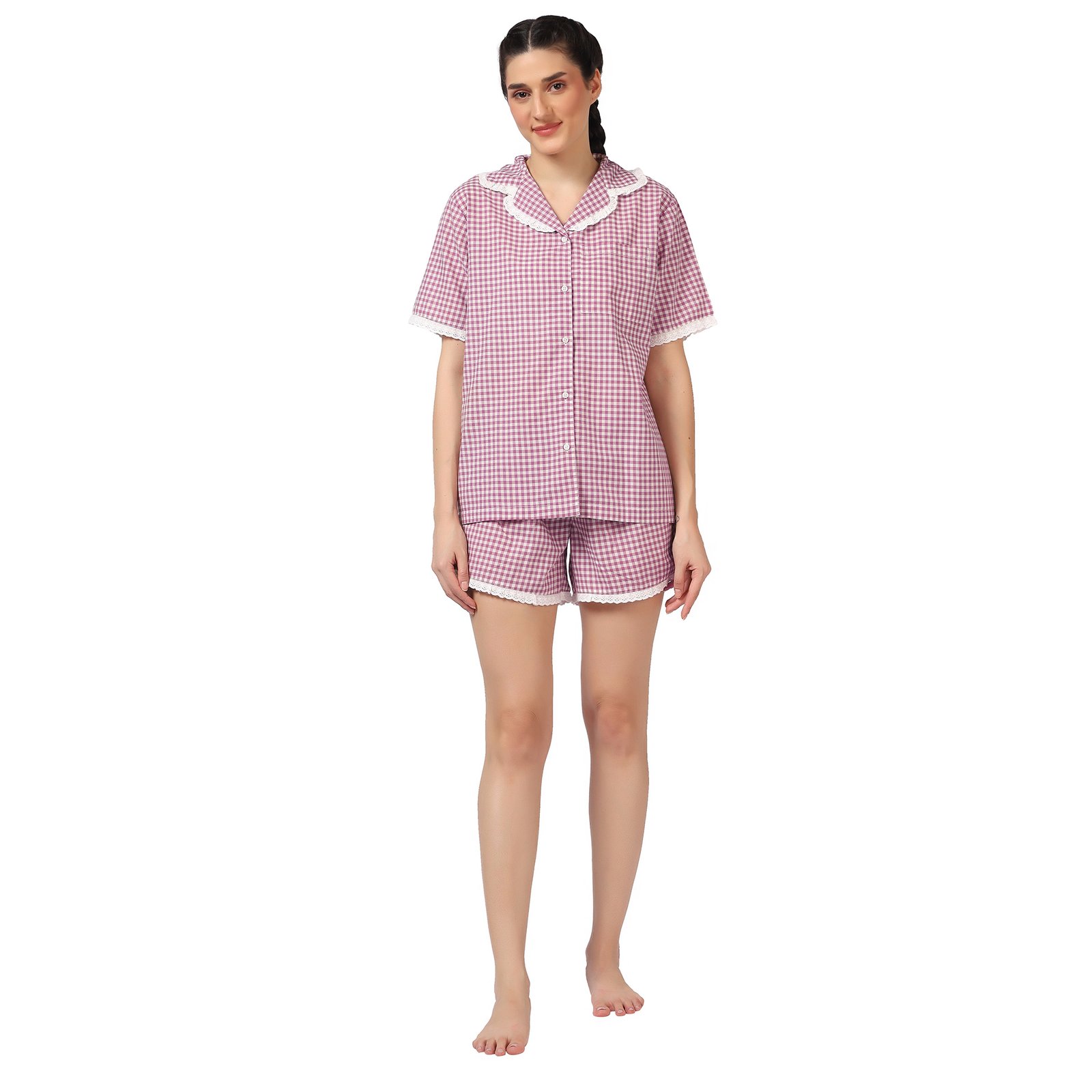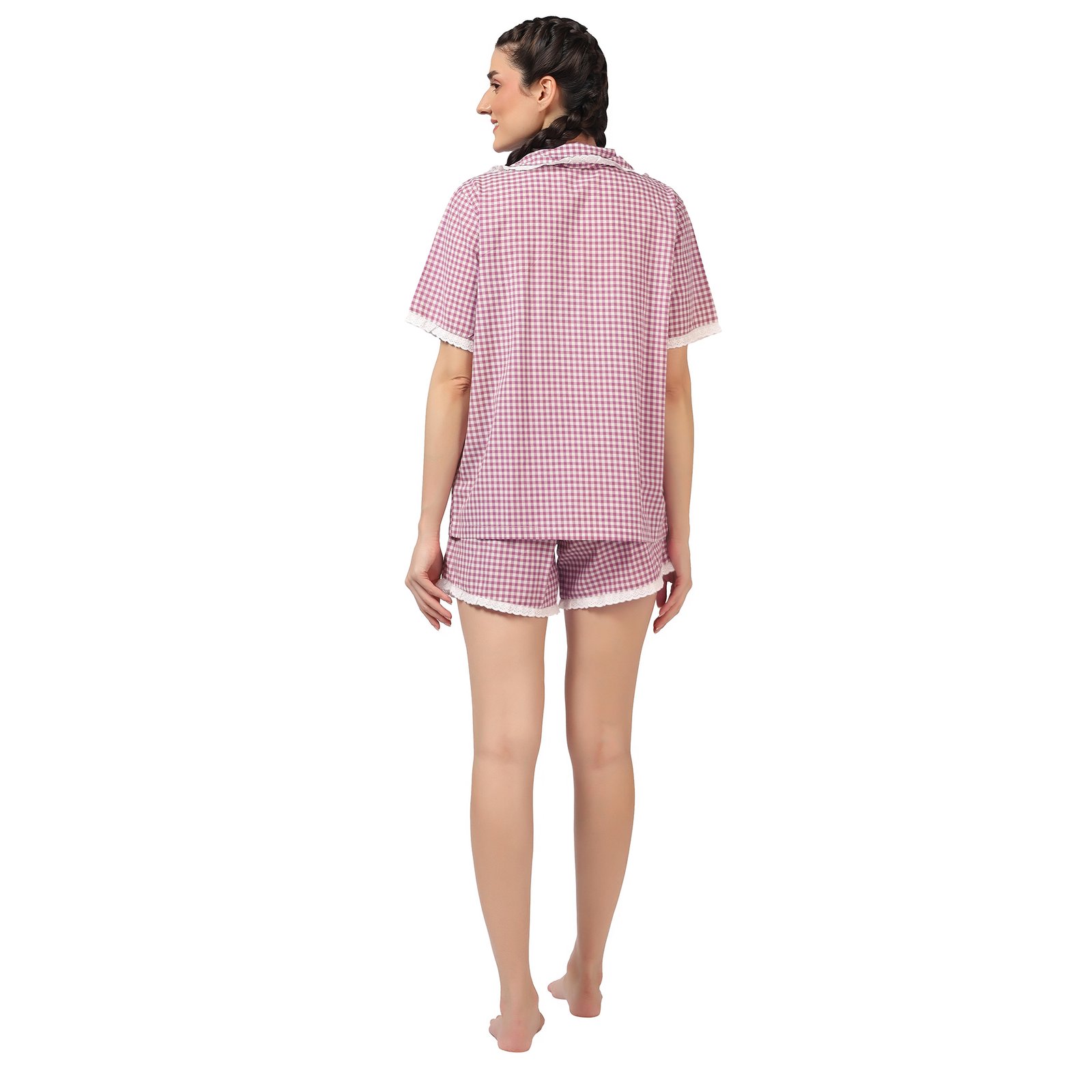 Channel retro charm with this gingham lace-trimmed short set—made for cozy chats, midnight snacks, and main character moments. Your bedtime routine just got an upgrade.